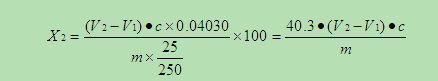 以質(zhì)量百分?jǐn)?shù)表示的氧化鎂(MgO)含量X2按下式計(jì)算: