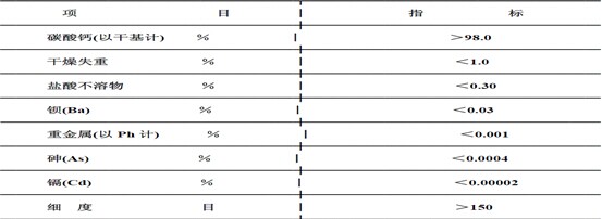 1.1、食品添加劑碳酸鈣的要求:GB 1989-2007