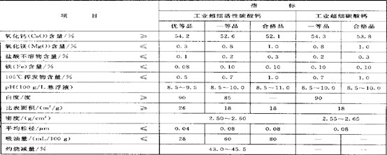 2.2、工業(yè)超細(xì)碳酸鈣和工業(yè)超細(xì)活性碳酸鈣 HG/T 2776-1996