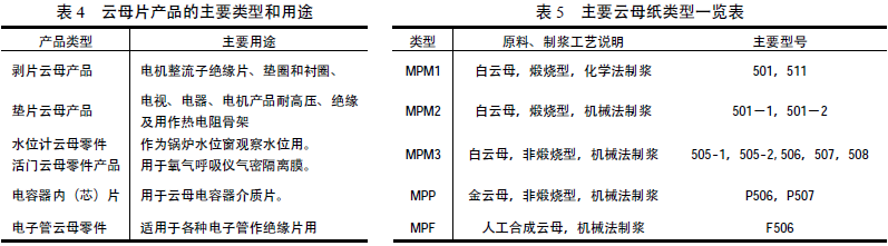 云母紙生產(chǎn)原料系采用白云母或金云母碎,按特殊的工藝處理,通過(guò)化學(xué)法或機(jī)械法制漿在造紙?jiān)O(shè)備中抄造云母紙,類(lèi)型、型號(hào)見(jiàn)表5。