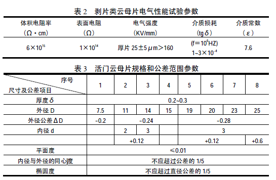 例如剝片類(lèi)云母片制品更多強(qiáng)調(diào)電氣性能的指標(biāo),試驗(yàn)檢測(cè)應(yīng)滿足的條件見(jiàn)表2。(試驗(yàn)應(yīng)在溫度23±2℃和相對(duì)濕度45%~55%的條件下經(jīng)清潔處理后進(jìn)行)。又如,活門(mén)云母片產(chǎn)品質(zhì)量檢測(cè),強(qiáng)調(diào)表面平整和加工精度,這是根據(jù)它應(yīng)用功能制定的,其規(guī)格和公差范圍見(jiàn)表3。云母片的加工手工完成,用途廣泛涉及于航天、軍工、機(jī)電、冶金、化工和家電等領(lǐng)域(表4)。