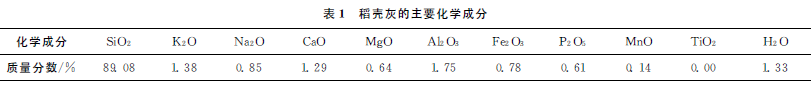 稻殼灰的主要成分是無定形二氧化硅,分子式為SiO2·nH2O表示(其中nH20是以表面羥基的形式存在),許多研究都集中在利用稻殼灰生產(chǎn)SiO2 ?稻殼灰的主要化學(xué)成分如表1?