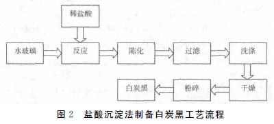 鹽酸沉淀法原理和硫酸沉淀法相似,其工藝過程如圖2所示?水玻璃與鹽酸反應(yīng)生成硅酸,相當(dāng)于強(qiáng)酸制弱酸的過程,由于硅酸是一種白色膠狀沉淀,在硅酸鈉溶液中被分散開來,是由于硅酸內(nèi)各部分親水性質(zhì)的不同而導(dǎo)致懸浮于水中,最終形成白色膠狀懸浮物?反應(yīng)式如式(3)?式(4):
