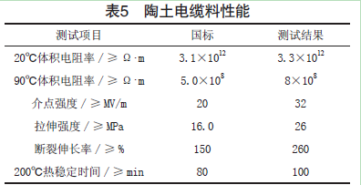 陶土,廣西產(chǎn)。白度85%,含鐵0.67%,細(xì)度2000目左右,沉降體積28ml/100g。該陶土生產(chǎn)的電纜的性能,見表5。