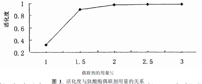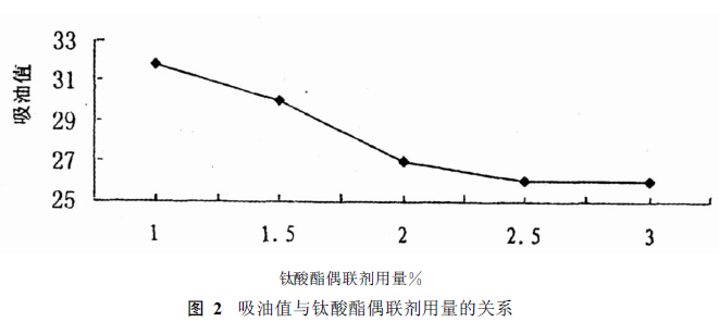綜合分析圖1和圖2, 取鈦酸酯劑量2.5%為最佳劑量。
