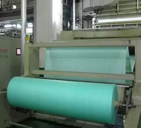 原輔材料熔融后,擠出極細(xì)的絲線狀纖維,經(jīng)輥壓后形成無紡合成紙。與無紡布工藝有許多相似之處。