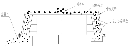 ①轉子采用錐形結構,并增設預粉碎刀組。