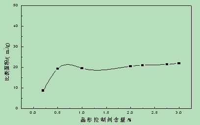 圖3 比表面積隨晶形控制劑添加量變化的關(guān)系圖