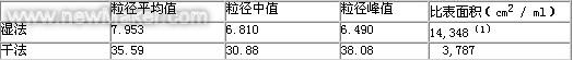表1 干法、濕法產(chǎn)品的粒度測試結(jié)果(實例)