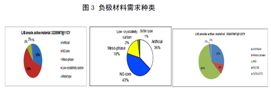參見鋰離子電池的增長趨勢,可以推測炭負(fù)極材料的增長趨勢。圖2(參見IIT 總研報(bào)告)是2010 年至2012 年電池的發(fā)展情況。小型鋰電池每年保持15%以上的速度增長。從2009 年開始,電動(dòng)汽車鋰電開始量產(chǎn),隨著技術(shù)的成熟和成本的降低,2012-2015 年其需求將大幅度增長。