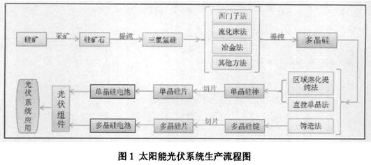 | 石墨材料從來源可以分為天然石墨和高純石墨, 而天然石墨因為粉體形態(tài)較多使其應(yīng)用受到限制, 因此發(fā)展高純石墨變得越來越重要;高純石墨在光伏生產(chǎn)中的應(yīng)用隨著近年來光伏行業(yè)的快速發(fā)展而得到急速升溫。光伏行業(yè)從基礎(chǔ)原料硅礦到最終光伏系統(tǒng)應(yīng)用的流程如圖1 所示。