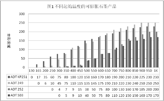 1) 不同的起始膨脹溫度的可膨脹石墨產(chǎn)品