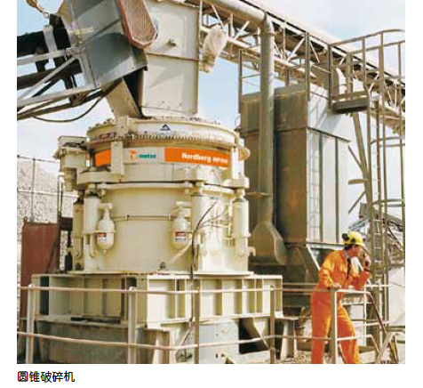 瑞典山特維克集團(tuán)的液壓圓錐破碎機(jī)和芬蘭美卓公司的HP 系列圓錐破碎機(jī)是高能化的代表。最大規(guī)格的高能化圓錐破碎機(jī),20 世紀(jì)80年代為諾德伯格公司制造的MP1000 型圓錐破碎機(jī),其動(dòng)錐直徑為Φ2 390 mm,安裝功率為746 kW。該機(jī)特點(diǎn)是空心主軸、球面瓦支承動(dòng)錐、緩錐、高擺頻、大偏心距、周邊多缸液壓鎖緊和采用先進(jìn)的自動(dòng)控制系統(tǒng)等。