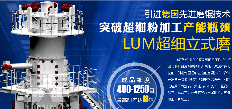 LUM系列超細(xì)立磨是黎明重工結(jié)合多年的各種磨機(jī)研發(fā)制造經(jīng)驗(yàn),以LM系列立式磨為基礎(chǔ),借鑒德國(guó)超細(xì)立磨的相關(guān)技術(shù),設(shè)計(jì)開(kāi)發(fā)的先進(jìn)粉磨設(shè)備,是一種一次完成超細(xì)粉磨、分級(jí)、輸送于一體的超細(xì)制粉設(shè)備。該機(jī)可直接粉磨生產(chǎn)650目的重鈣,通過(guò)增加二次分級(jí)裝置,可生產(chǎn)1500目的超細(xì)重鈣,一次成品細(xì)度d97=400~1500目(8~38μm),單機(jī)生產(chǎn)能力依機(jī)型不同在8~18t/h。
