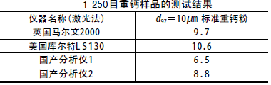 表1 不同激光粒度儀對(duì)1250目重鈣樣品測(cè)試結(jié)果