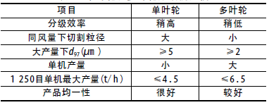表2 單葉輪和多葉輪分級(jí)機(jī)的比較