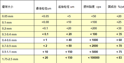 (2) 將漿料粘度(viscosity)﹑固含量﹑研磨前細(xì)度(start fineness)、(最終要求細(xì)度)Target之粒徑做準(zhǔn)備并滿足表(一)需求。