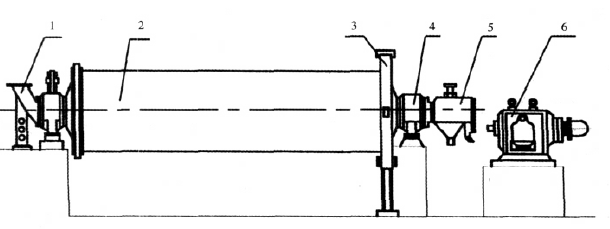球磨機也是生產(chǎn)中常用的磨細(xì)設(shè)備。用于磨細(xì)各種原料、熟料、廢磚等, 有時將兩種或多種原料共同入磨磨細(xì), 起到既磨細(xì)又高度均勻混合相互嵌合的作用。球磨機由磨機主體和傳動裝置兩部分組成,其結(jié)構(gòu)示于圖1。