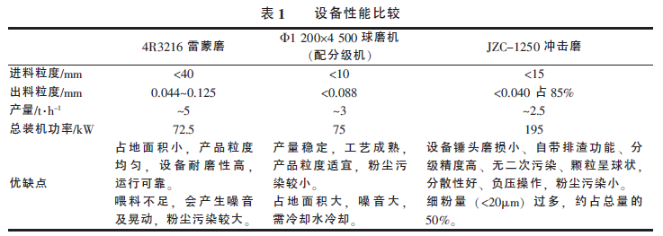 各種粉磨設(shè)備各具優(yōu)缺點, 比較結(jié)果見表1。