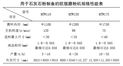 5 歐版磨粉機制備石灰石粉的技術(shù)特點