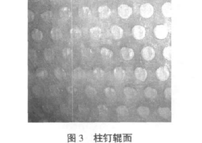 在水泥行業(yè)已經(jīng)較成功地解決輥面磨損問題,在礦山行業(yè)輥面壽命是關系到高壓輥磨技術能否有效利用的一個非常重要的因素。國內(nèi)外都已成功推出了柱釘輥面結(jié)構(gòu)形式(見圖3),柱釘為高硬度的硬質(zhì)合金,耐磨性非常優(yōu)異,同時擠壓過程中在輥面形成了密實的料墊,有效地保護輥面母材。柱釘輥面結(jié)構(gòu)的輥面壽命是傳統(tǒng)堆焊輥面的5 倍以上。