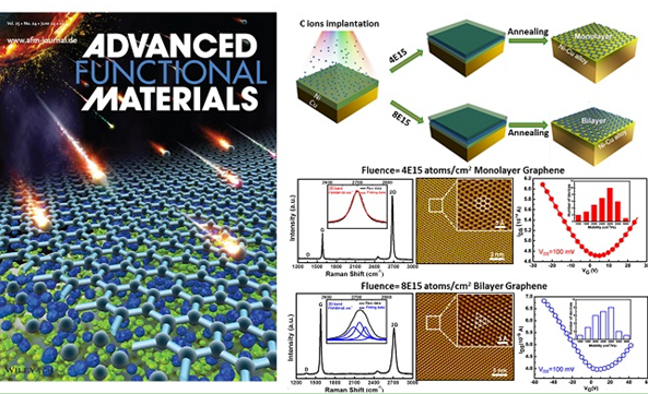 圖:Advanced Functional Materials 背封面(左);研究論文的實(shí)驗(yàn)過程及制備的單、雙層石墨烯的各項(xiàng)性能表征(右)