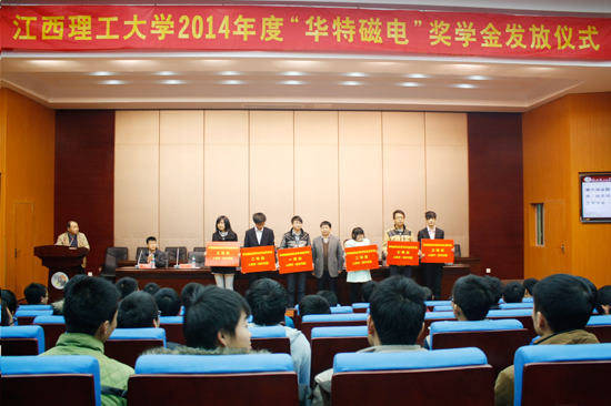 (中國(guó)粉體技術(shù)網(wǎng)/班建偉)1月13日,我公司與江西理工大學(xué)“華特磁電”獎(jiǎng)學(xué)金頒獎(jiǎng)儀式暨報(bào)告會(huì)在江西理工大學(xué)隆重舉行。