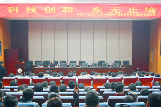 獎(jiǎng)學(xué)金發(fā)放儀式結(jié)束后,王兆連董事長(zhǎng)作《科技創(chuàng)新 永無(wú)止境》的專題報(bào)告,向在場(chǎng)的莘莘學(xué)子們分享了公司艱辛的創(chuàng)業(yè)發(fā)展史,介紹了公司的主要技術(shù)產(chǎn)品和最新的研發(fā)動(dòng)態(tài)。最后,王董事長(zhǎng)誠(chéng)摯邀請(qǐng)優(yōu)秀的有志之士加盟華特,共同發(fā)展,實(shí)現(xiàn)人生的理想和價(jià)值。