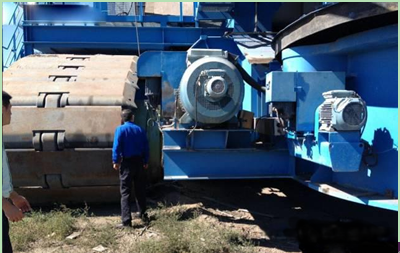 德國蒂森克虜伯公司生產出霸氣巨型破碎機機身重一千五百噸,電機巨大,履帶兩遍各一個的