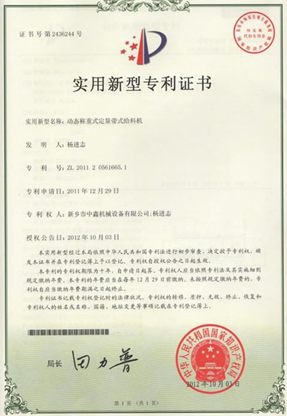 | 新鄉(xiāng)中鑫機(jī)械動態(tài)稱重式定量帶式給料機(jī)榮獲國家專利 |