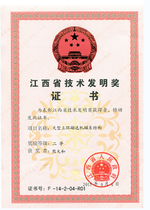 | 贛州金環(huán)“大型立環(huán)磁選機(jī)磁系結(jié)構(gòu)”專(zhuān)利項(xiàng)目榮獲省技術(shù)發(fā)明二等獎(jiǎng) |