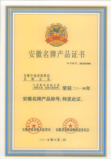 合肥中亞環(huán)??萍加邢薰窘陙?lái)狠抓管理,創(chuàng)品牌、樹形象,產(chǎn)品質(zhì)量和服務(wù)質(zhì)量不斷提升,繼多個(gè)袋除塵器系列產(chǎn)品獲2014年中國(guó)建材行業(yè)著名品牌后,公司“中亞牌高效除塵器(袋除塵器、電除塵器系列)”又榮獲2014年度“安徽省名牌產(chǎn)品”稱號(hào)。
