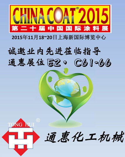 張家港市通惠化工機(jī)械有限公司于2015年11月18-20日在上海新國際展覽中心參加第二十屆中國國際涂料展,展位號E2,C61-66,誠邀同行客戶蒞臨指導(dǎo)!
