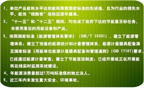 高耗能行業(yè)能效“領(lǐng)跑者”應(yīng)滿足以下要求: