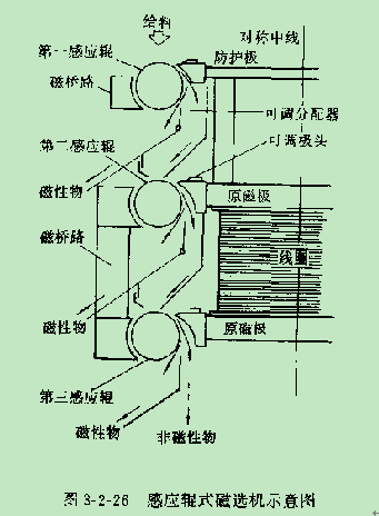 由電磁系統(tǒng)、分選系統(tǒng)和傳動(dòng)系統(tǒng)組成,為了減少渦流發(fā)熱和傳動(dòng)功率,磁輥用薄的導(dǎo)磁鋼片和非磁性圓片交替疊成。