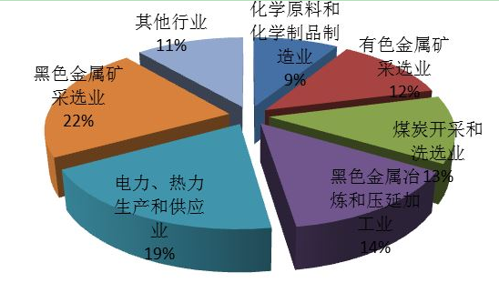 2013年,一般工業(yè)固體廢物產(chǎn)生量較大的行業(yè)依次為黑色金屬礦采選業(yè)6.8億噸,占重點調(diào)查工業(yè)企業(yè)的21.7%;電力、熱力生產(chǎn)和供應業(yè)6.1億噸,占重點調(diào)查工業(yè)企業(yè)的19.4%;黑色金屬冶煉和壓延加工業(yè)4.4億噸,占重點調(diào)查工業(yè)企業(yè)的14.1%;有色金屬礦采選業(yè)3.9億噸,占重點調(diào)查工業(yè)企業(yè)的12.5%;煤炭開采和洗選業(yè)3.8億噸,占重點調(diào)查工業(yè)企業(yè)的12.1%;化學原料和化學制品制造業(yè)2.8億噸,占重點調(diào)查工業(yè)企業(yè)的8.9%。這6個行業(yè)一般工業(yè)固體廢物產(chǎn)生量占重點調(diào)查工業(yè)企業(yè)的88.7%。