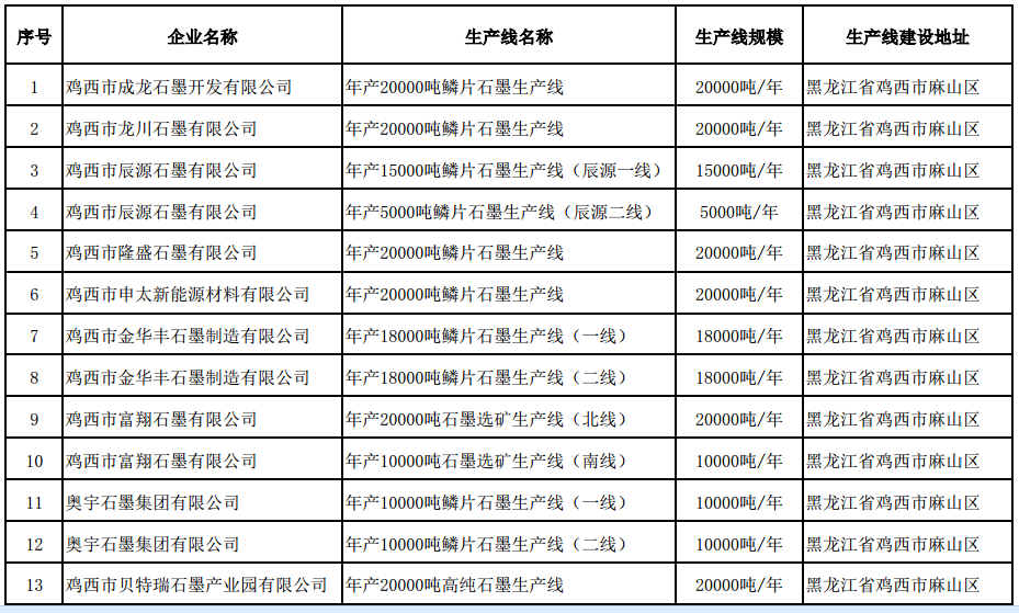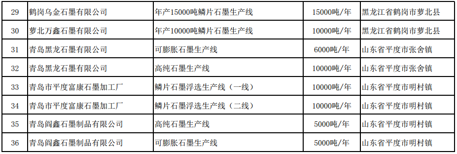 符合《石墨行業(yè)準(zhǔn)入條件》生產(chǎn)線名單(第二批)