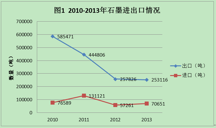 表1 2010年—2013年中國(guó)石墨進(jìn)出口情況