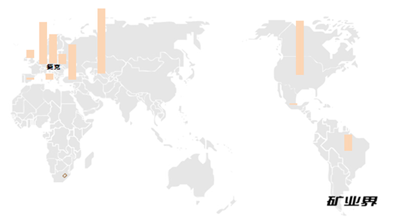 圖1.4 全球高嶺土產(chǎn)量分布圖