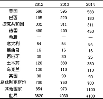表1.1 全球主要國家高嶺土產(chǎn)量(單位:萬噸 )