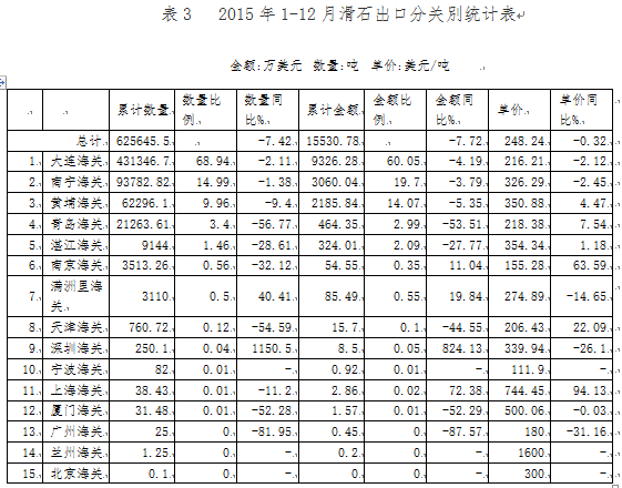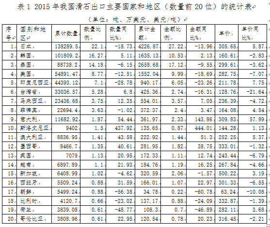 2015年我國滑石出口市場的主要特點