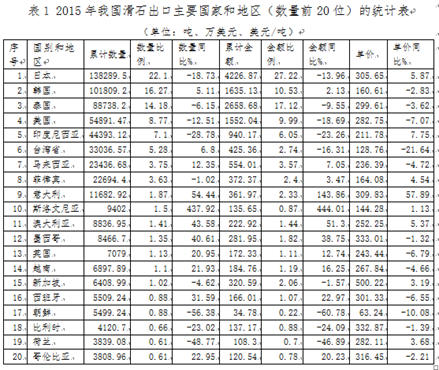 | 1-12月我國(guó)滑石共計(jì)出口62.6萬噸,同比下降7.42%,出口平均單價(jià)248美元/噸,同比下降0.32%。日本仍然是我國(guó)滑石出口的第一大市場(chǎng),出口13.8萬噸,同比大幅度下降,降幅達(dá)到18.7%,出口單價(jià)305.7美元/噸,同比增長(zhǎng)5.9%。韓國(guó)進(jìn)口滑石數(shù)量居第二位,達(dá)到10.2萬噸,同比增長(zhǎng)16.3%,出口平均價(jià)格160.6美元/噸,同比下降2.83%。東南亞市場(chǎng)(含泰國(guó)、印度尼西亞、臺(tái)灣、馬來西亞、菲律、新加坡、越南)共出口22.6萬噸,占出口總量比例36.1%。東南亞市場(chǎng)的出口量同比下降7.9%,出口量所占比同比持平。對(duì)北美洲滑石出口為5.49萬噸,同比下降12.5%,出口單價(jià)282.7美元/噸,同比下降18.7%。對(duì)歐洲市場(chǎng)出口5.1萬噸,同比增長(zhǎng)22.5%,出口單價(jià)為259美元/噸,同比下降1.24%。(見表1)