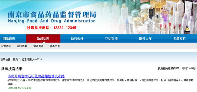 今年2月強(qiáng)生嬰兒爽身粉在美被曝光含滑石粉引發(fā)致癌恐慌后,南京食品藥品監(jiān)督管理局隨后展開(kāi)專項(xiàng)抽檢行動(dòng)并于上周五公布抽檢結(jié)果。結(jié)果顯示,在被抽查的33批次不同品牌含滑石粉的化妝品中,均未檢出石棉物質(zhì)。“因此使用合格化妝品用滑石粉為原料的化妝品,質(zhì)量安全是可控的。”
