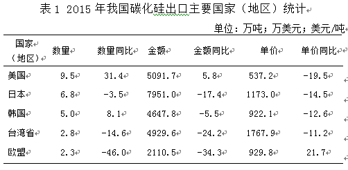 一、2015年碳化硅出口情況分析