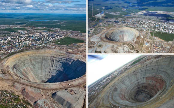 這個(gè)巨大的鉆石礦有524米深,直徑約為1609米,火山口一樣的形狀使它看上去仿佛被隕石砸中一般。由于這個(gè)礦本身巨大,當(dāng)?shù)毓芾聿块T要求直升機(jī)不得近距離飛過礦坑上空,以免被吸進(jìn)礦洞內(nèi)。(資料來源:騰訊新聞)