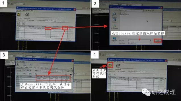3. 點(diǎn)擊condition,在彈出來(lái)的對(duì)話框中,主要要確認(rèn)的測(cè)試條件為:起始和終止角度,掃描速度,狹縫寬度,管電壓和管電流。在圖3所示位置輸入對(duì)應(yīng)數(shù)值即可。