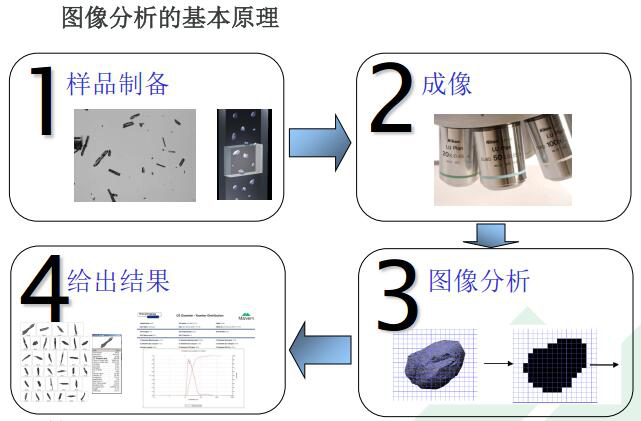 它的基本工作原理是將顯微鏡放大后的顆粒圖像通過CCD攝像頭和圖形采集卡傳輸?shù)接?jì)算機(jī)中,由計(jì)算機(jī)對(duì)這些圖像進(jìn)行邊緣識(shí)別等處理,計(jì)算出每個(gè)顆粒的投影面積,根據(jù)等效投影面積原理得出每個(gè)顆粒的粒徑,再統(tǒng)計(jì)出所設(shè)定的粒徑區(qū)間的顆粒的數(shù)量,就可以得到粒度分布。