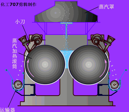 但滾筒干燥器結(jié)構(gòu)復(fù)雜,傳熱面積小,干燥產(chǎn)品含水量較高(一般為3~10%)。滾筒干燥器與噴霧干燥器相比,具有動力消耗低、投資少,維修費用少,干燥時間和干燥溫度容易調(diào)節(jié)(可改變滾筒轉(zhuǎn)速和加熱蒸汽壓力)等優(yōu)點,但其在生產(chǎn)能力、勞動強度和條件等方面則不如噴霧干燥器。