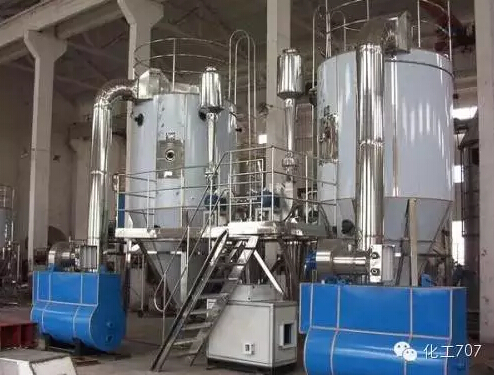 噴霧干燥器是將溶液、漿液或懸浮液通過噴霧器而形成霧狀細(xì)滴并分散于熱氣流中,使水分迅速汽化而達(dá)到干燥的目的。熱氣流與物料可采用并流、逆流或混合流等接觸方式。這種干燥方法不需要將原料預(yù)先進(jìn)行機(jī)械分離,且干燥時(shí)間很短(一般為5~30s),因此適宜于熱敏性物料的干燥,如食品、藥品、生物制品、染料、塑料及化肥等。