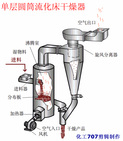 缺點(diǎn)是流化床干燥器適用于處理粒徑為30μm~6mm的粉粒狀物料,粒徑過小使氣體通過分布板后易產(chǎn)生局部溝流,且顆粒易被夾帶;粒徑過大則流化需要較高的氣速,從而使流體阻力加大、磨損嚴(yán)重。